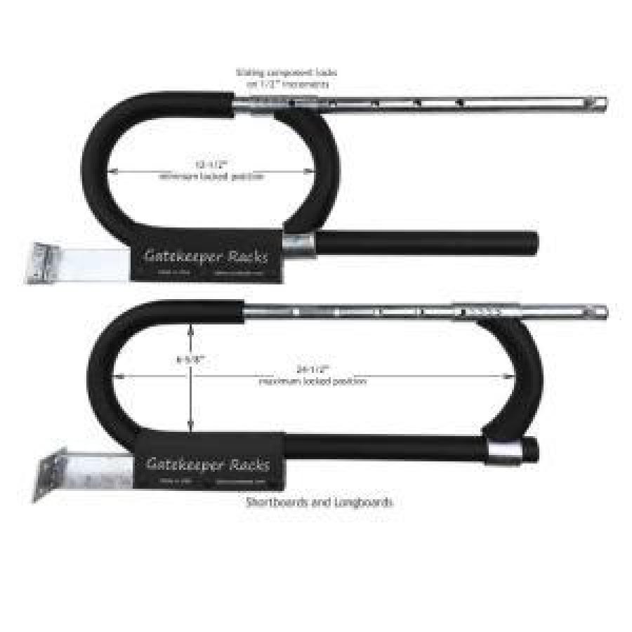 - QUICK AND EASY TO INSTALL – mounting hardware included. Simple design takes just minutes to mount to your wall or structure. Once installed, the rack has only one sliding part to adjust to your board size and lock in place.